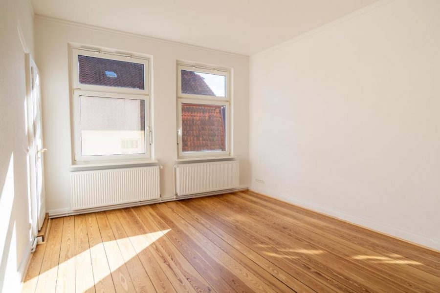 Bereits der langgezogene Flur mit dem aufgearbeitetem Dielenboden und den frisch gestrichenen Wänden wird Sie begeistern.
